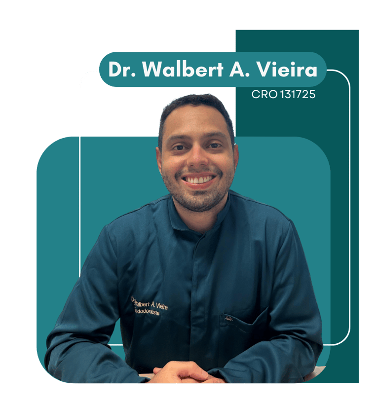 Dr. Walbert A. Vieira é cirurgião-dentista, especialista, mestre e doutor em Endodontia pela UNICAMP (CRO 131725). Atua com foco em endodontia e atendimentos de urgência. Realizando tratamento de canal em pacientes de todas as idades e atendimento a traumatismos dentários, com precisão técnica, segurança e foco na resolução rápida da dor.